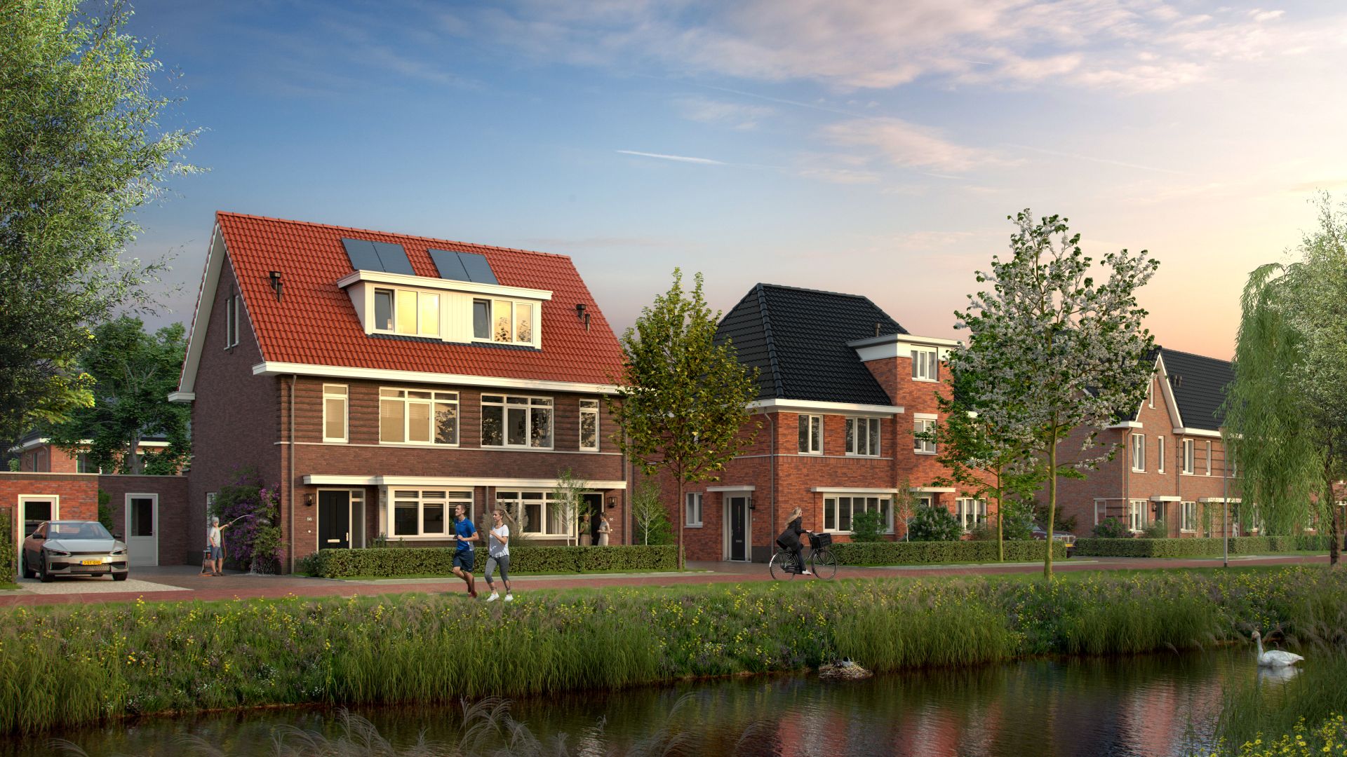 Aan een sfeervol straatje, met uitzicht op de waterrijke singel en het omliggende groen, vind je deze prachtige twee-onder-een-kapwoning. De woning straalt niet alleen allure uit, maar biedt ook volop ruimte voor comfortabel wonen. Aan de voorzijde bevindt zich de ruime leefkeuken, perfect voor lange diners en gezellige avonden. Via de lichte woonkamer stap je zo de zonrijke tuin in, die rondom het huis ligt. Op de eerste verdieping vind je drie ruime slaapkamers en een complete badkamer met inloopdouche, toilet en wastafel. De tweede verdieping biedt volop mogelijkheden voor een extra slaapkamer, werk- of hobbyruimte en beschikt over een aparte technische ruimte met wasmachineaansluiting. Kenmerken • Veranda • Dakkapel aan voorzijde • Warmtepomp en 12 zonnepanelen • Vloerverwarming gehele woning • Stenen geïsoleerde berging • Eigen oprit met twee parkeerplaatsen • Optie tot uitbouw van 1.20 meter of 2.40 meter